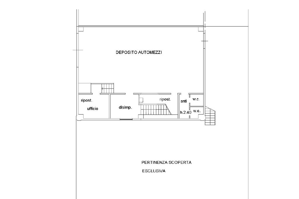 . un ambiente principale di circa 117 mq, con altezza di 4.40mt, completamente libero e accessibile da portone,