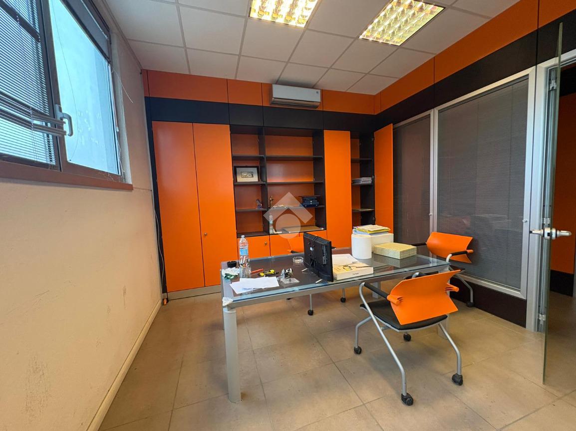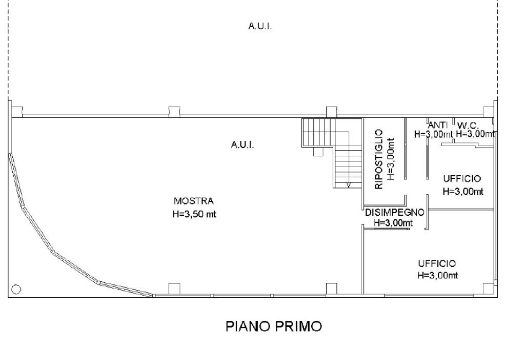 L’immobile si struttura su due livelli: al piano terra abbiamo 240 mq adibiti a negozio con antibagno e bagno per disabili; mentre il primo piano è composto da 170 mq per la mostra e 70 mq di uffici.